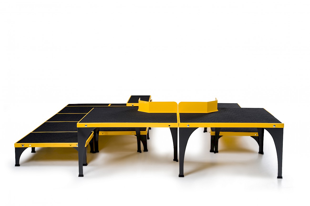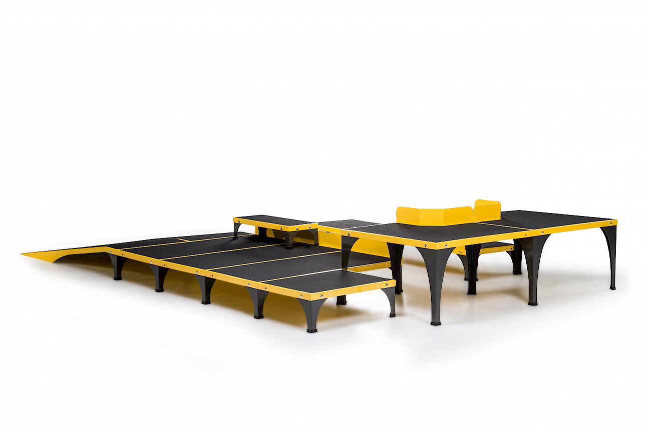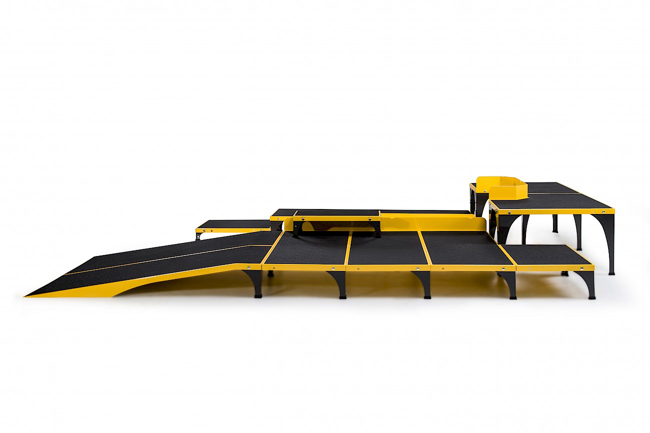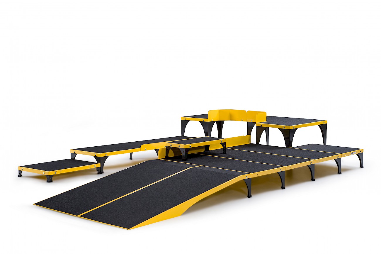 ICare składa się z trzech podzespołów: eliptyki E875MA, Systemu odciążeniowego E875MU oraz rampy dla wózków inwalidzkich wraz ze schodkami i platformą E875MP.